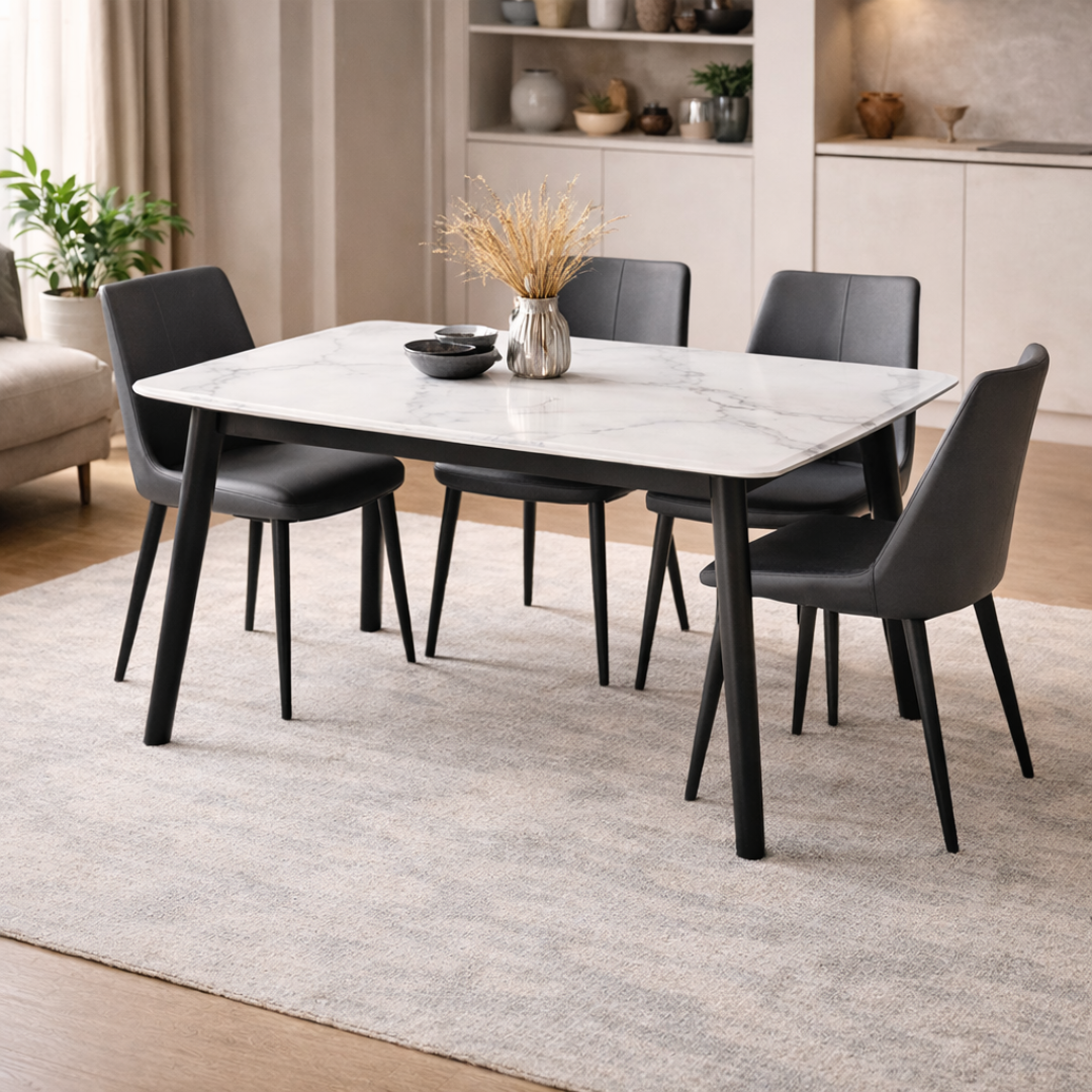Bright, modern, and effortlessly elegant, the Aurora Dining Set is designed to bring a refined and welcoming feel to your dining space. Featuring a Stone-faced White table paired with your choice of Raven or Cocoa chairs, this set offers both versatility and style for contemporary homes.